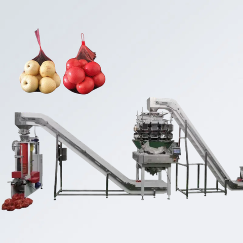 אריזת שקית רשת אוטומטית מוטה ומכונה שקילה לתפוחי בצל שום גזר לימונים ותפוזים